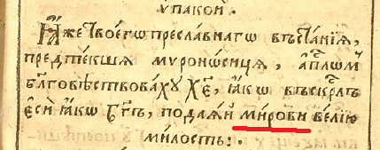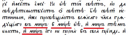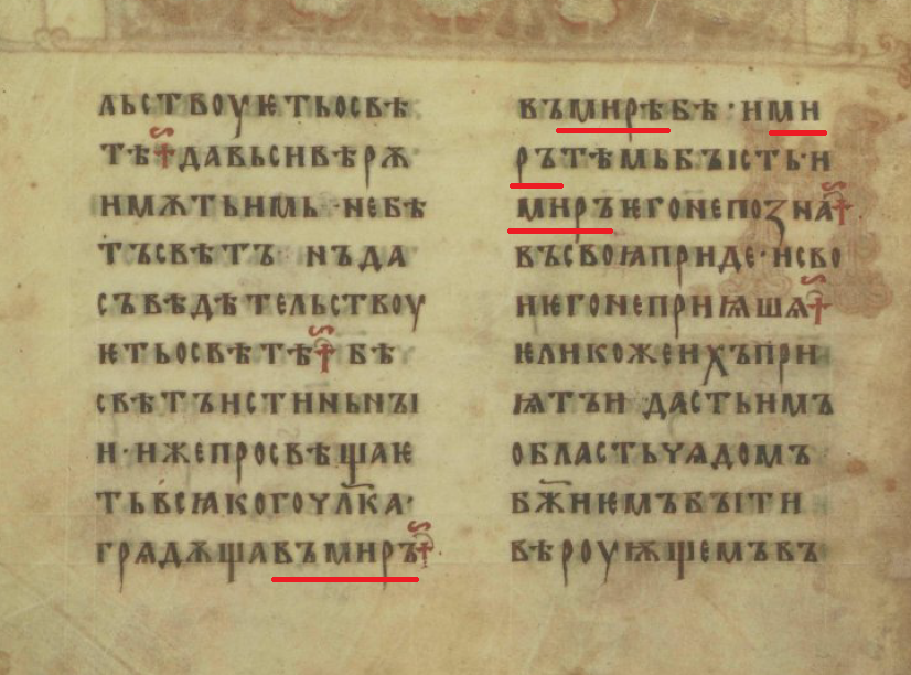 д) до кінця XVI ст. в богослужбових текстах, написаних на території сучасної України та Московії, церковнослов'янське слово, що українською означає світ, майже завжди писалося як