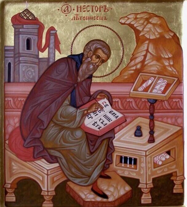 О, преподобний отче, премудрий наставнику і Богом улюблений подвижнику Несторе Літописцю! Стоячи зі сміливістю біля престолу Вічної Слави, не забудь нас грішних і недостойних, бурями пристрастей обтяжених, і заступництвом твоїм безперестанним захисти країну нашу, тобі рідну, і співвітчизників твоїх від усяких бід і скорбот. Утверди серця наші в православній вірі, Вітчизну свою навчи любити і у братолюбності міцній перебувати. Настав нас на стежки спасіння, щоб молитвами твоїми, заступнику наш, увійшли у вічне Царство слави, вихваляючи Господа і прославляючи твоє заступництво на віки віків. Амінь.